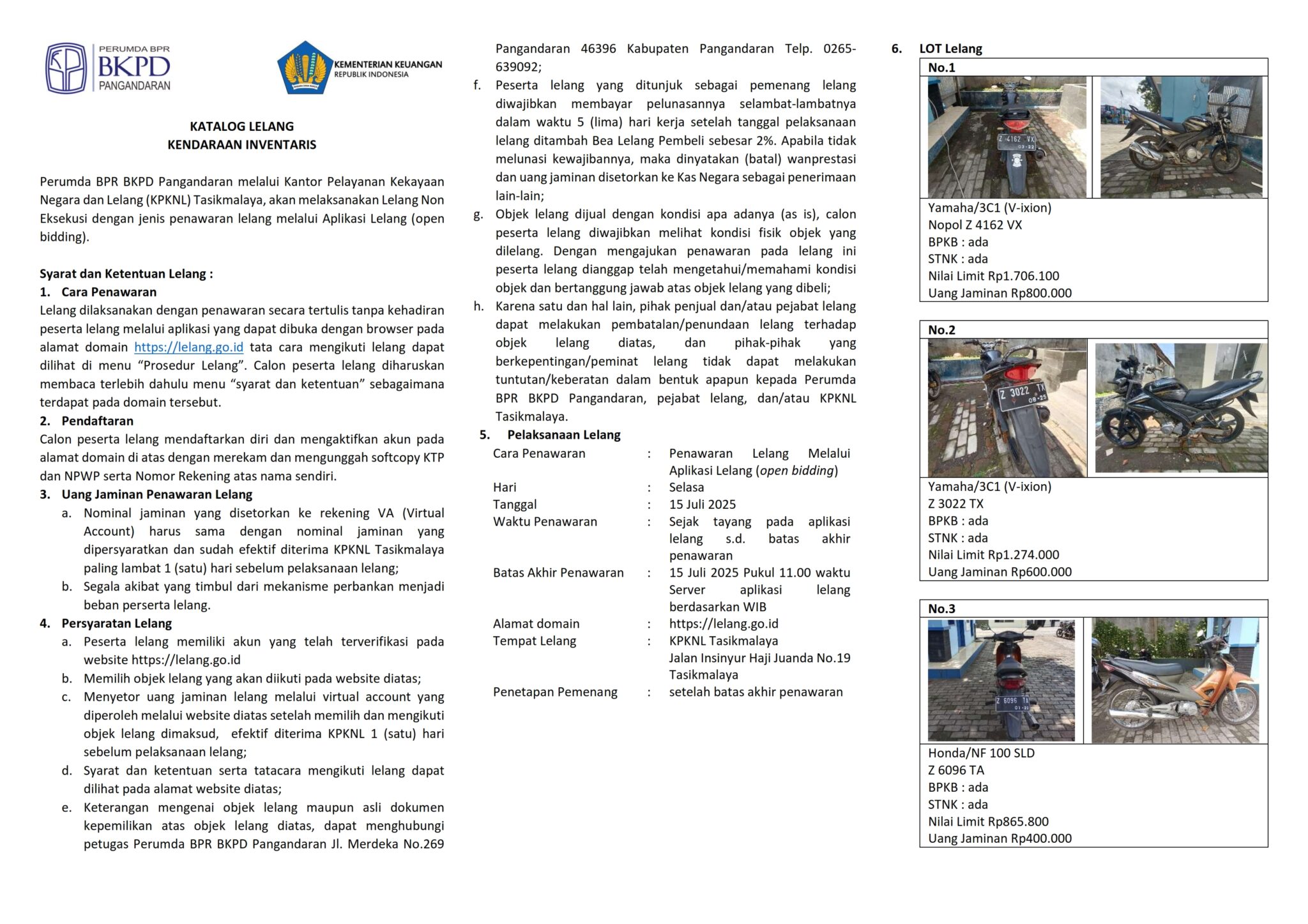 Pengumuman Lelang Kendaraan Inventaris Tahun 2025
